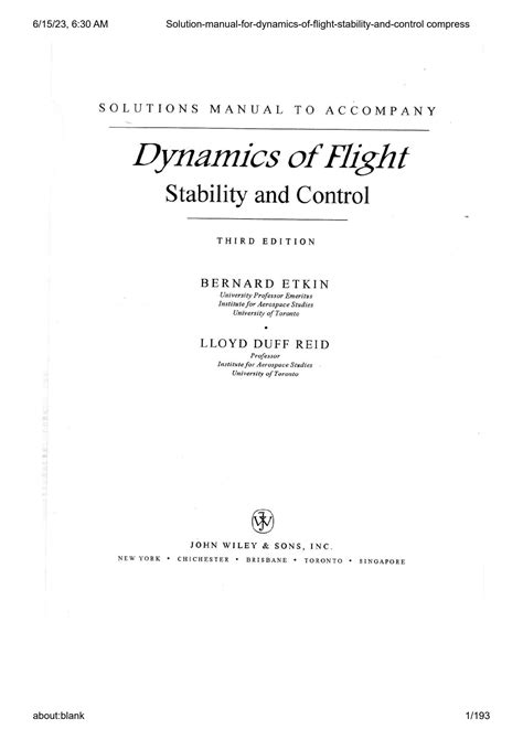 KCW - Free PDF DYNAMICS OF FLIGHT STABILITY AND CONTROL SOLUTION MANUAL PDF Library Genesis
